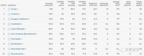2017年5月,英国卫报(Guardian)公布最新英国大学排名。
